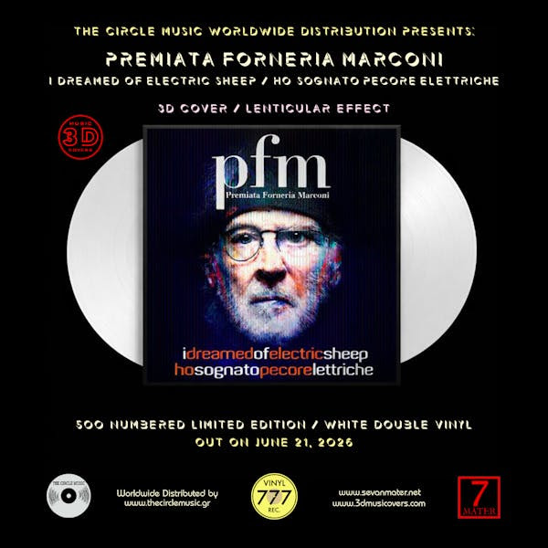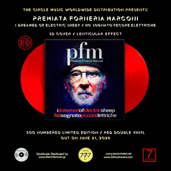 The legendary Premiata Forneria Marconi (PFM), considered the most important Italian progressive band during the 70s and then during their career P.F.M. ranged towards musical genres such as Rock and Funk, return to vinyl in spectacular style with the deluxe reissue of I Dreamed of Electric Sheep, brought to you by the new high-end label Vinyl 777. Known for its commitment to luxury editions and groundbreaking packaging, Vinyl 777 once again partners with 3D Music Covers to deliver an edition that is as visually breathtaking as it is musically essential.